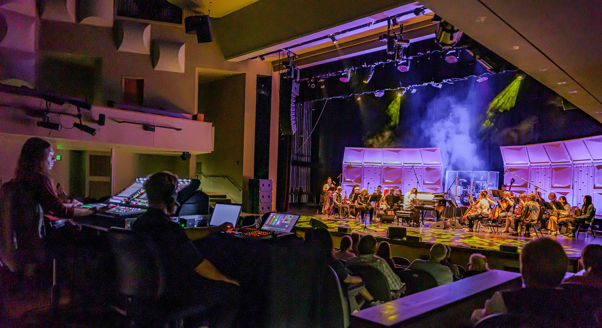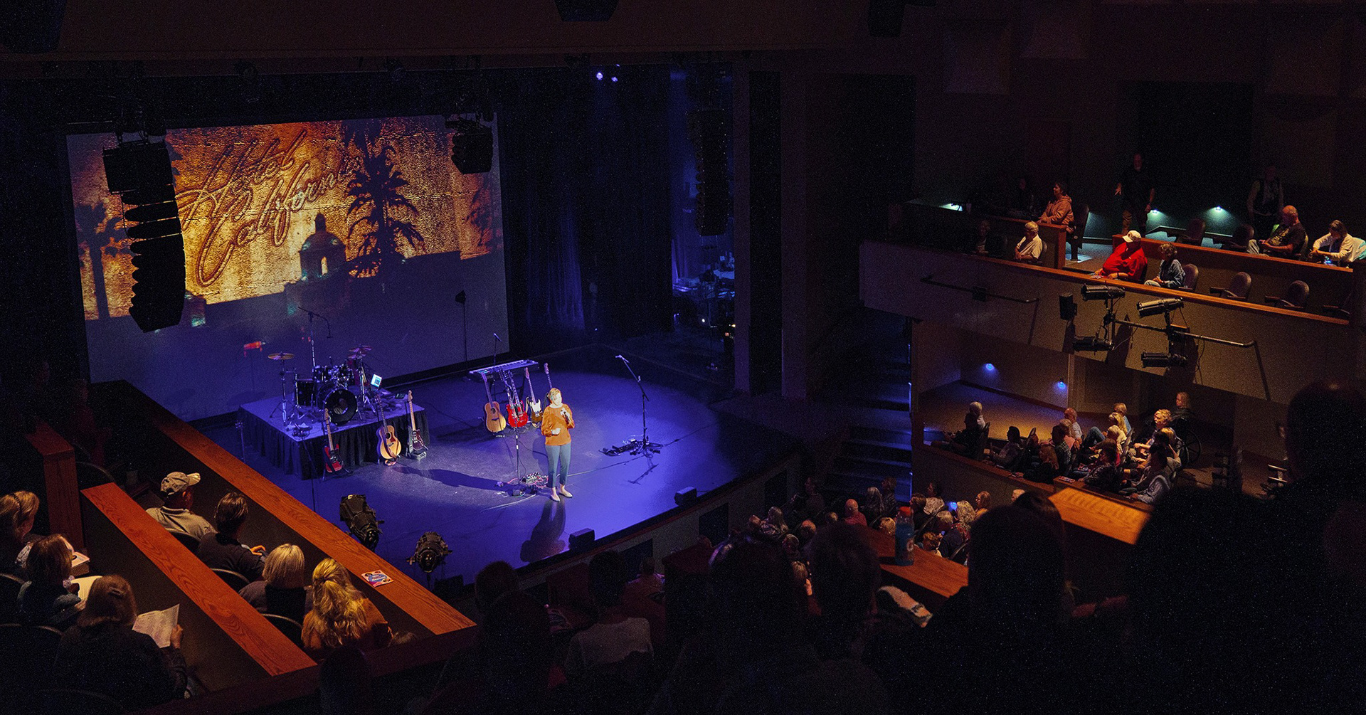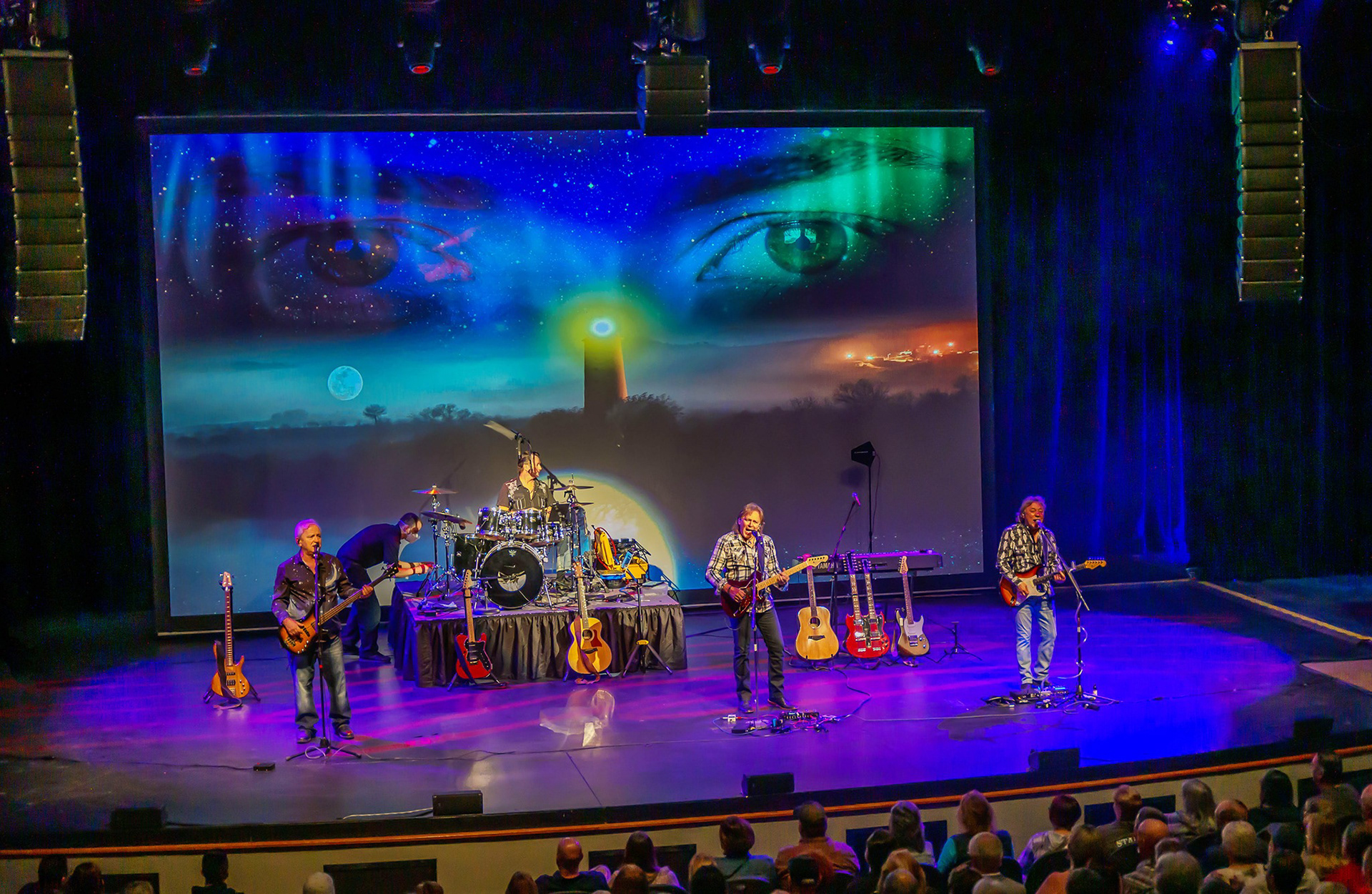 26x N-RAY compact array with 3x SCN-F low frequency extension. 6x SCV-F subwoofers, 2x HOPS8, 11x HOPS5, 2x G18-SUB. 2x CUE TWO and 8x CUE FOUR stage monitor wedges.